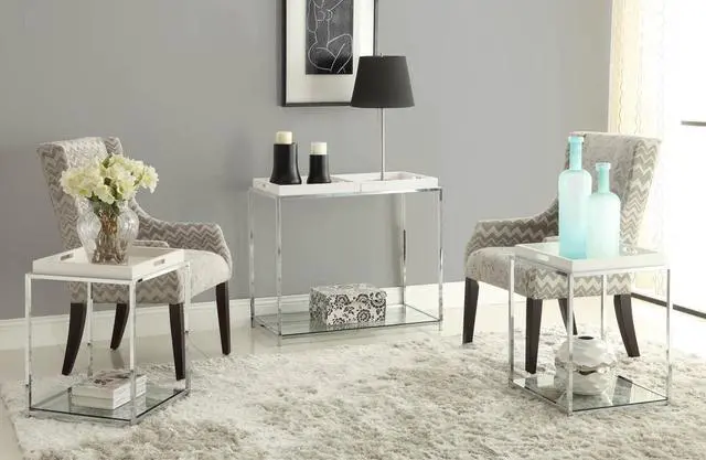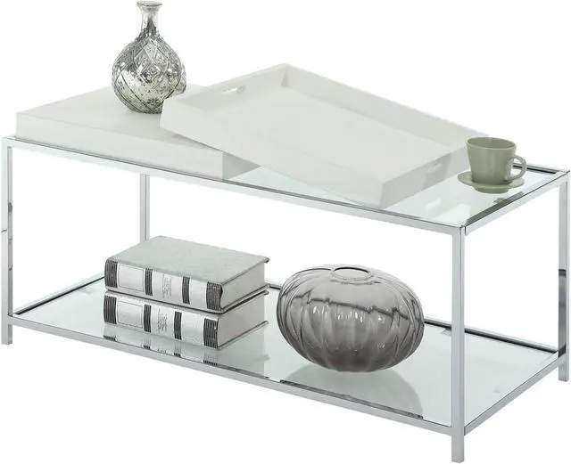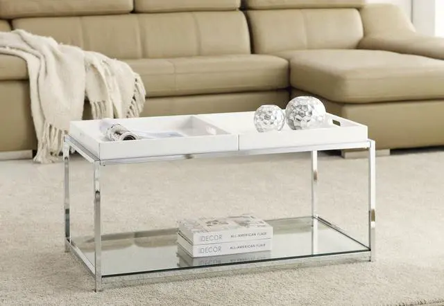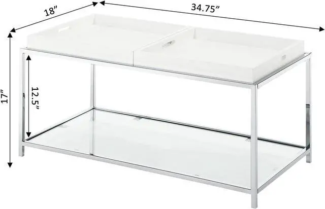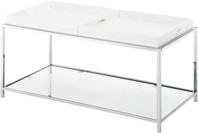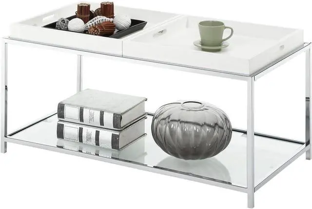 Removable/Reversible Tray Multi Function Use Chrome Plated Steel Frame Tempered Glass on top and bottom shelves Will provide years of enjoyment Removable/reversible tray Multi function use