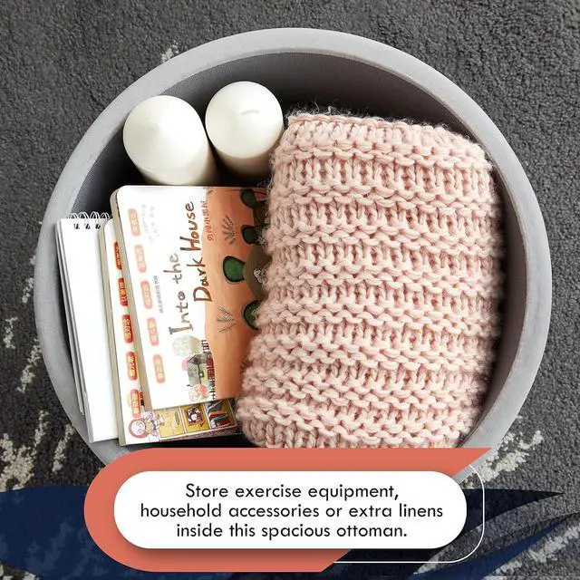 STORAGE SPACE: Store exercise equipment, household accessories or extra linens inside this spacious ottoman, and use the top as a foot rest or extra seating when you' re relaxing with friends in the living room.
