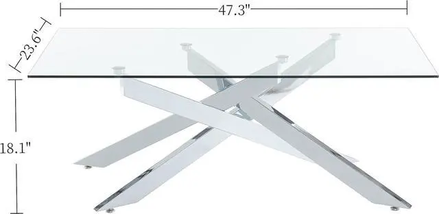 Unique Geometric Design: With its clean glass top and shiny metal tubular legs design, this glass coffee table brings modern theme to the indoor space