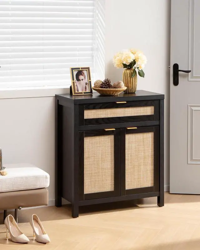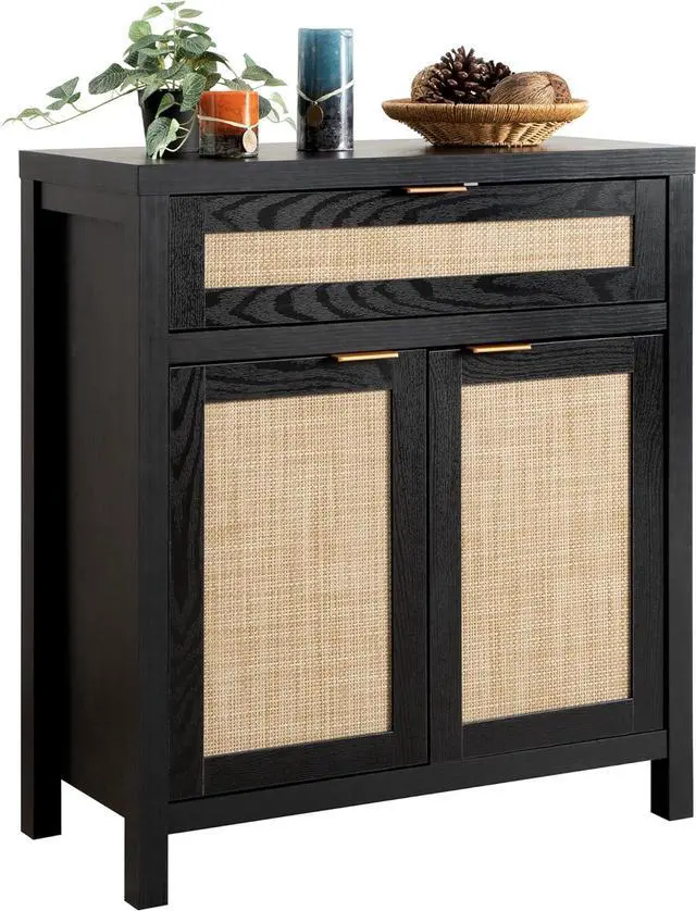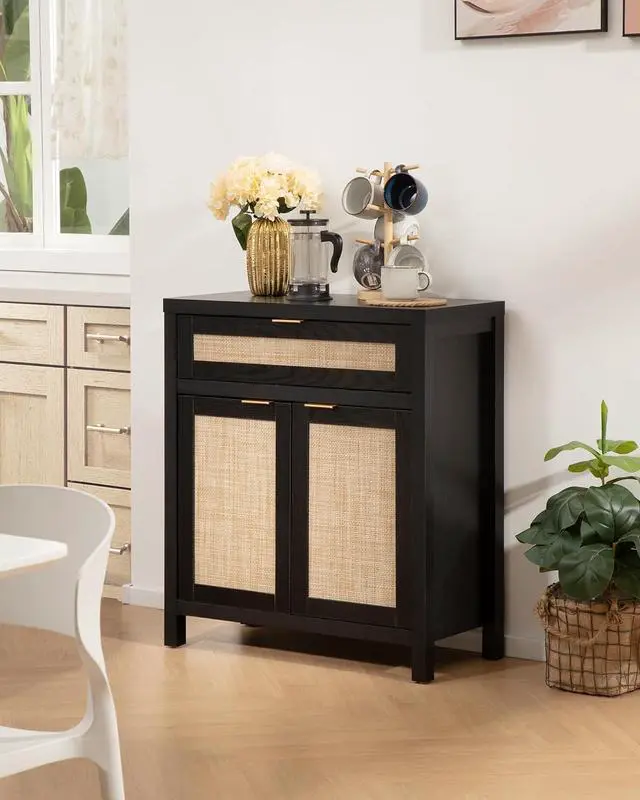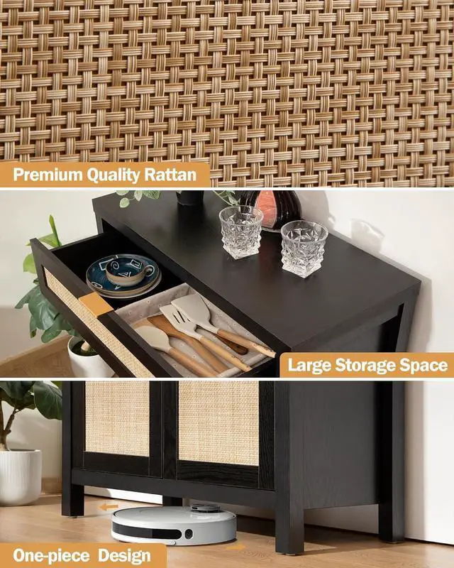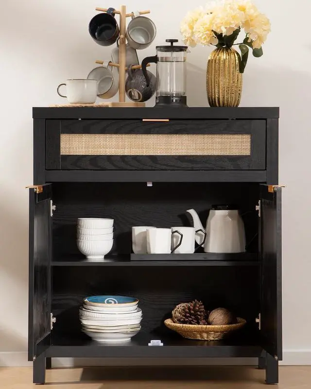 Large and Flexible StorageWith spacious rattan cabinet and drawer, this buffet cabinet offers ample storage space for dishes and silverware. The adjustable shelf allows you to customize the interior space to suit your storage needs perfectly.