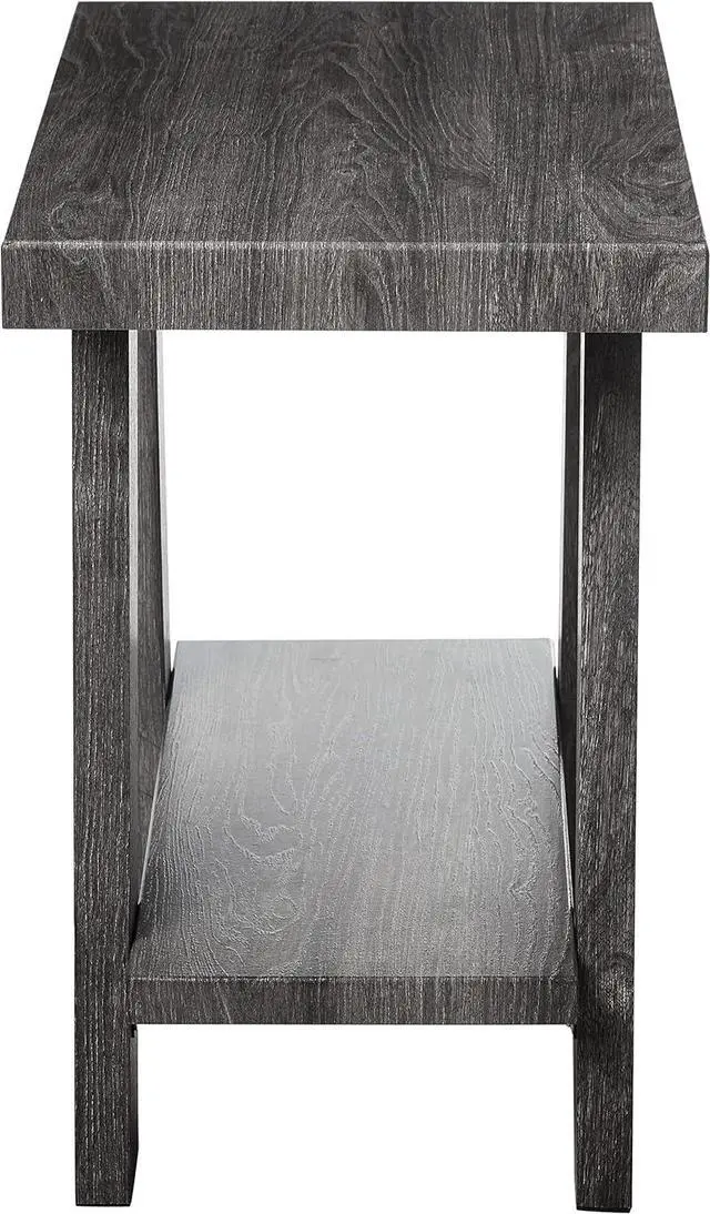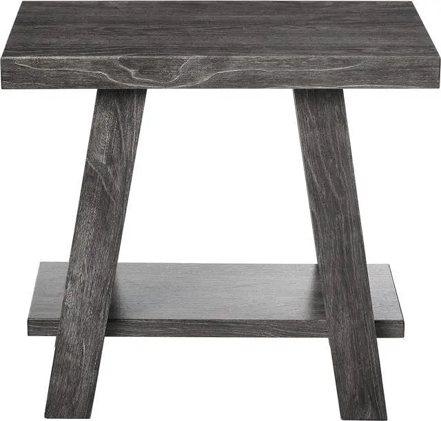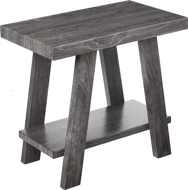 Table top is made out of high-quality hardwood veneer with wood grain in gray finish