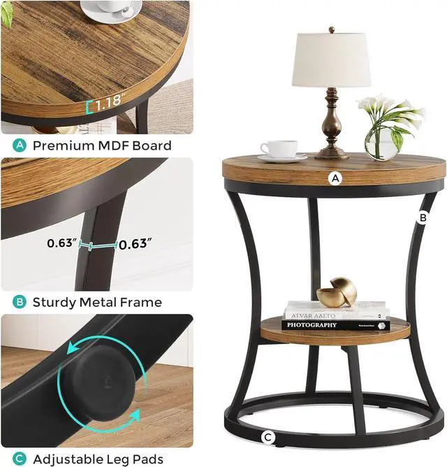 Rustic Industrial Style: With rustic industrial style, this side table is the perfect addition to your home. Whether you' re going for a modern minimalist look or a vintage industrial vibe, this end table will seamlessly blend in and enhance your overall aesthetic (Please follow the installation video on this product page to install)