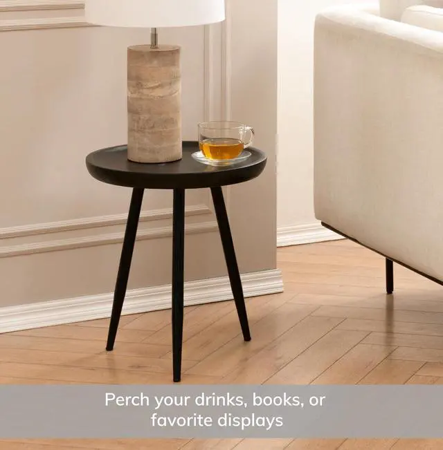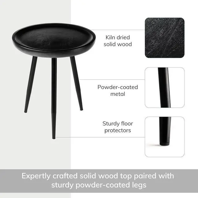 STURDY ROUND SIDE TABLE DESIGN- this accent nightstand side table exclusively designed by MH London with mango wood, the side tables top has a lip that stops items rolling off and stable slender metal legs - perfect small end table to keep drinks, ornaments or a lamp nearby