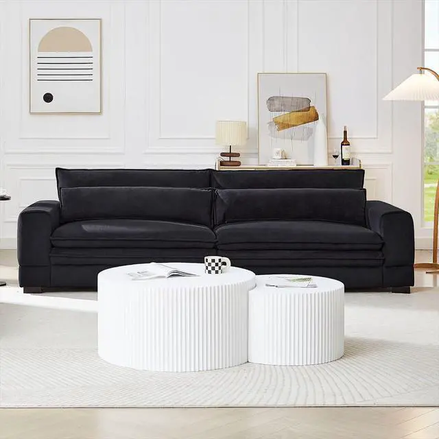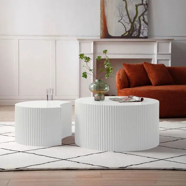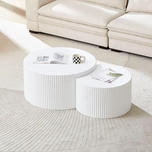 2-Piece Nesting DesignThe round coffee table set consists of one coffee table ( 31.5 " x H 15.75 " ) and one side table ( 23.62 " x H 13.78 " ). Unique shape allows them to nest perfectly together, come with a layered feeling. Whether combined or placed individually, it is a great choice