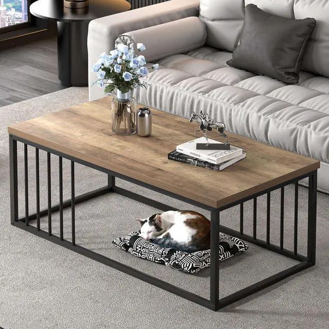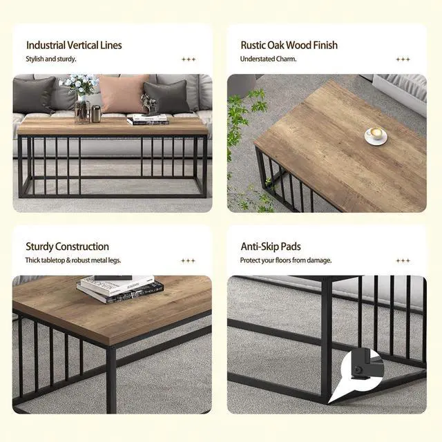 Versatile: The rustic oak coffee table features an open bottom space, providing a comfortable spot to stretch your legs. With a spacious 43.3 inch long tabletop, it' s perfect for keeping books, magazines, remotes or other items neatly organized. Minimalist living room tables also double as a tea table for home office.