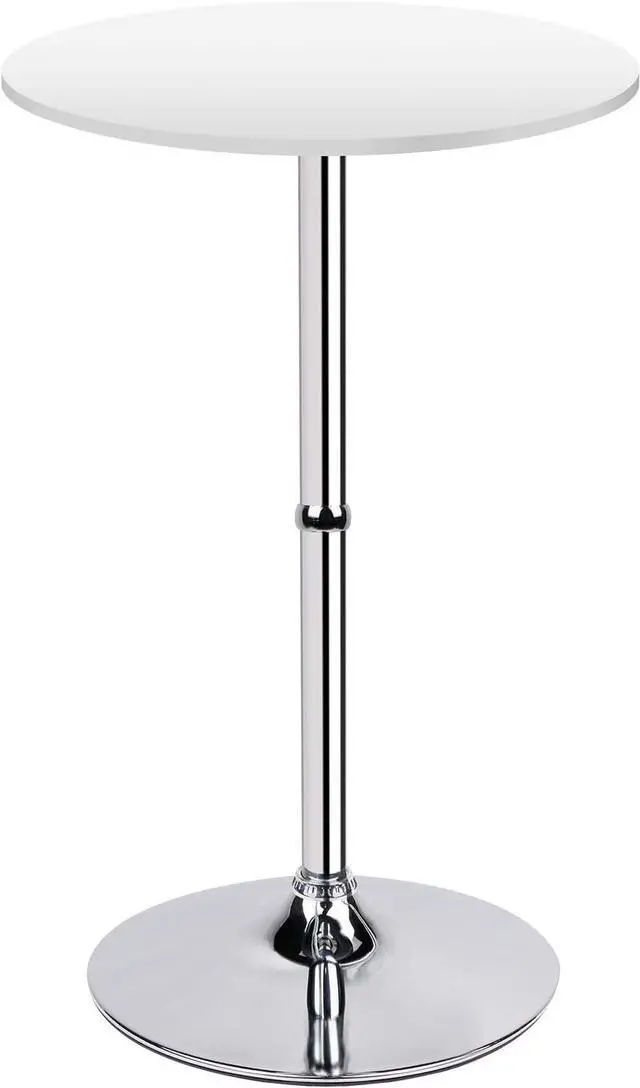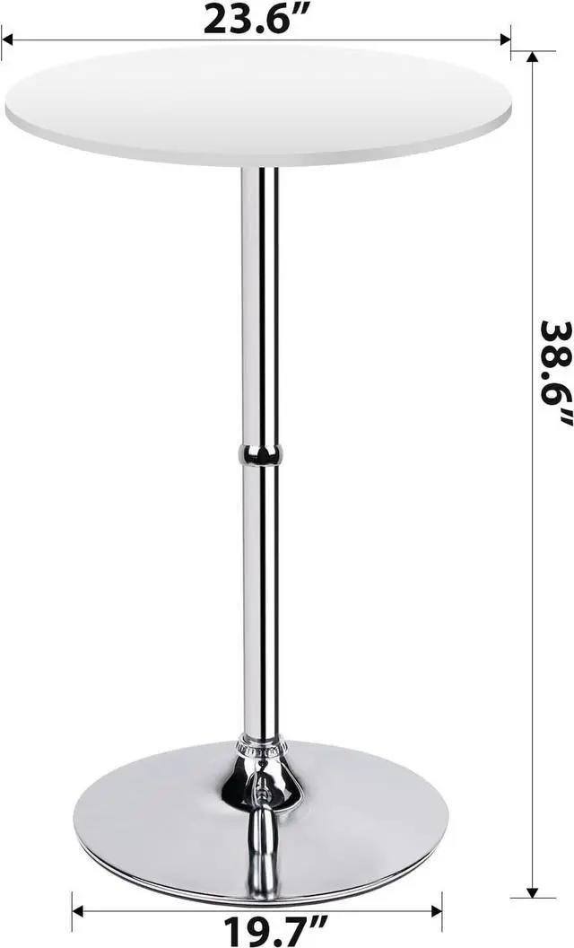 • Not adjustable round top bar table with smooth silver legs and base,the height is 41.3 inch