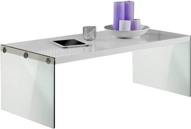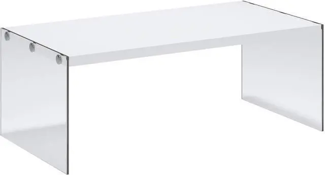 Monarch specialties , Coffee Table, Tempered Glass, Glossy White, 44"L
