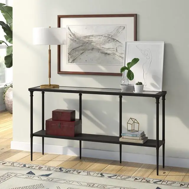 The tabletop has a weight capacity of 40 lbs. while the lower shelf can support 20 lbs.