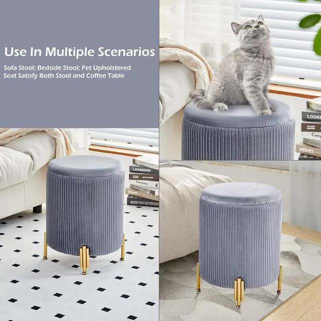 Multifunctional Ottoman: The velvet ottoman is not only a foot rest, but also can be a vanity chair and a padded seat. The top cover can also be turned over to become a small coffee table, you could put a cup of coffee or some desserts on it to have a pleasant time
