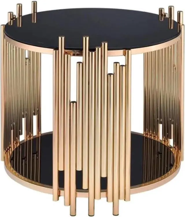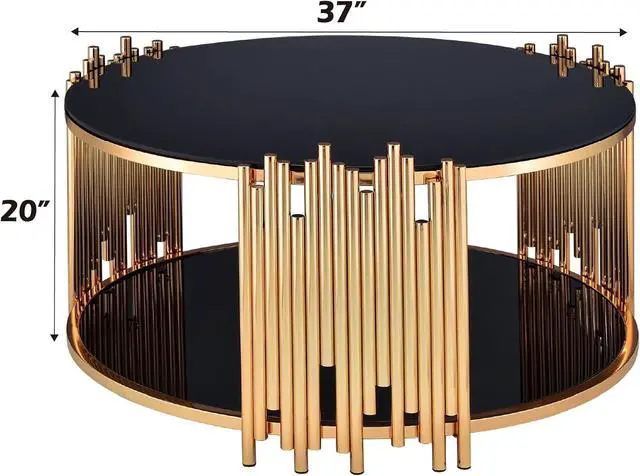 Acme Tanquin Modern Round Glass Top Coffee Table in Black and Gold