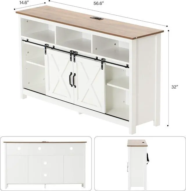 Hidden Storage Adjustable ShelvesThe farmhouse entertainment center stand is equipped with side open adjustable center shelves. This wood TV stand futures farmhouse cabinets offer ample concealed storage space for your desire for neatness.