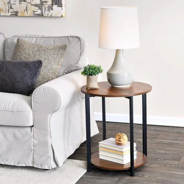 Functionality: This round end table has a lower storage shelf to help keep your belongings organized. Use it as an end table or side table in your living room, a bedside nightstand in the bedroom, or anywhere in your home you need a small table.