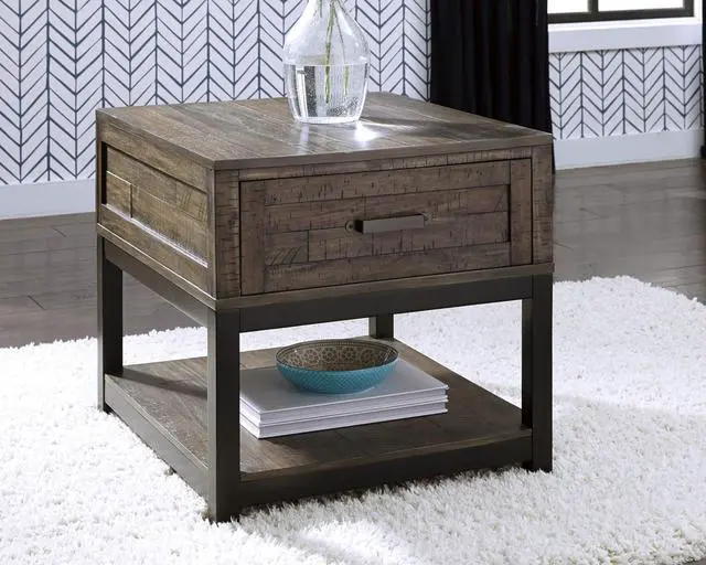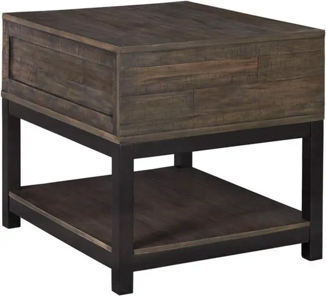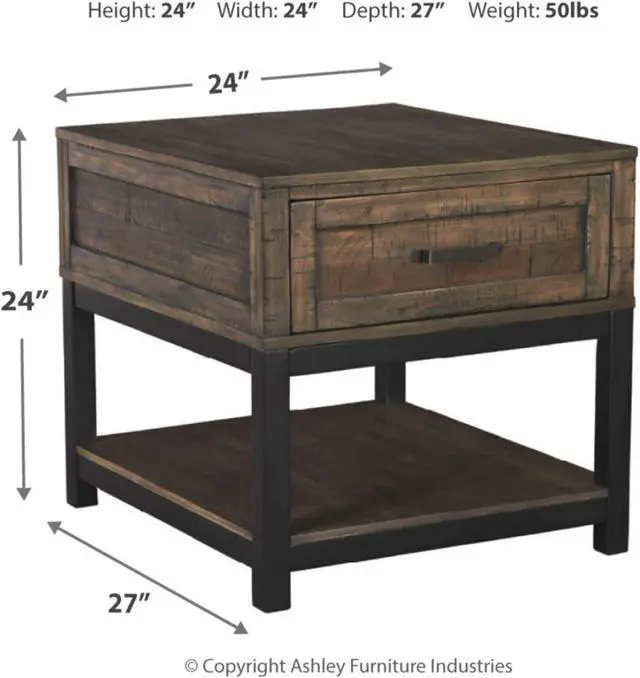 Signature Design by Ashley Johurst Rustic Square End Table, 1 Drawer and Fixed Lower Shelf, Rustic Brown