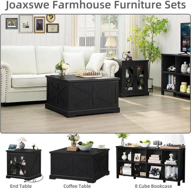 [Classic Farmhouse Style] The country coffee table features a simple square design with a unique fence, " X" pattern, black vintage metal decorative pieces, which is a perfect blend of modern style and rustic farm house style. The coffee table' s wood grain finish also adds a touch of nature. This farmhouse cocktail coffee table goes well with any living room furniture and décor, not only is it practical and functional, but it also adds to the beauty of the room and shows off your personal taste.