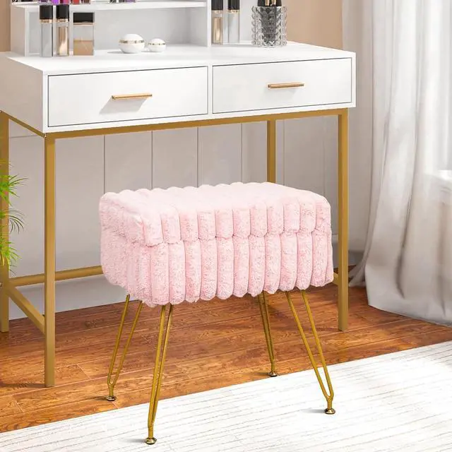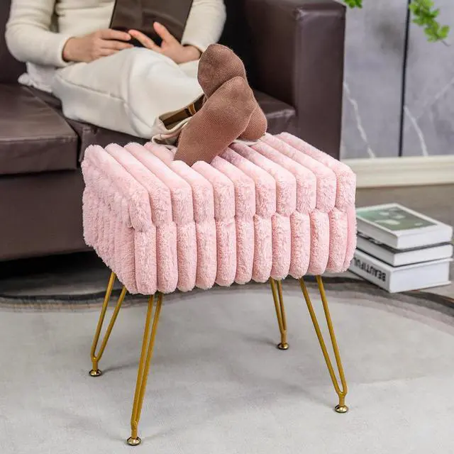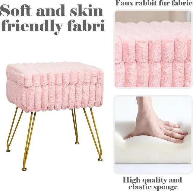 Beautiful&Strong: Built with a wood, this stool for vanity provides stability and strength for everyday use. The surface of vanity stool chair is made of artificial fur, and the vertical stripe design makes the stool more beautiful and atmospheric. The golden legs are made of solid iron and have strong load-bearing capacity. For any home, living room, bedroom, office, and modern charm. When you have guests visiting, you can also add extra seats