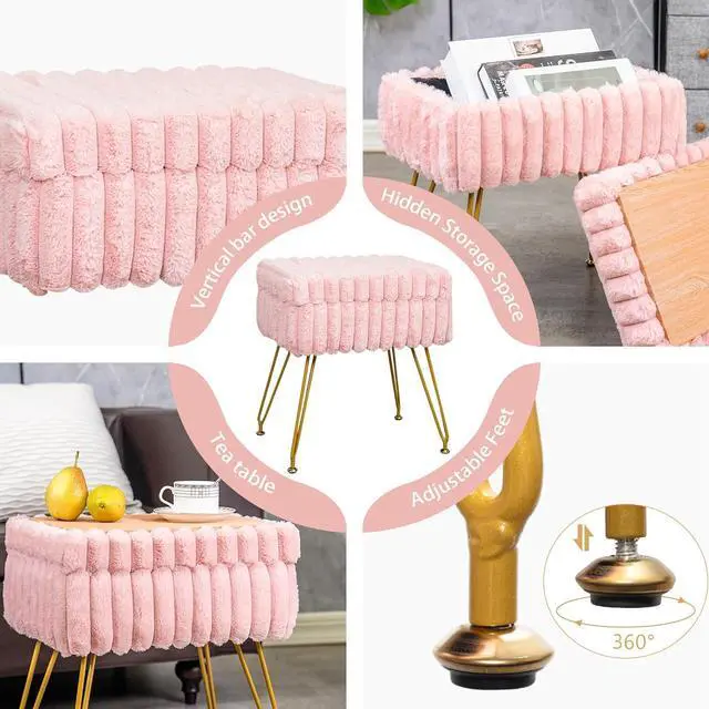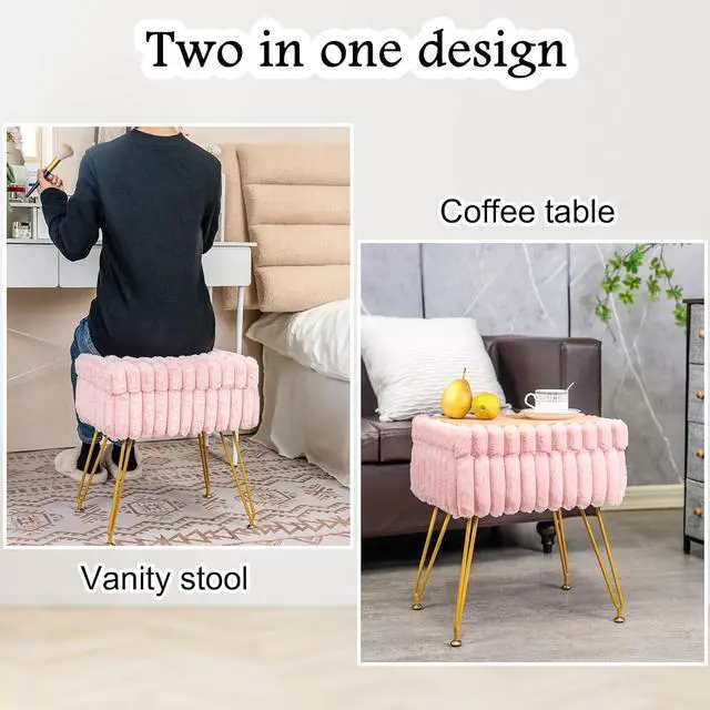 Widely used: This stool can be used as a makeup stool, paired with a makeup table at home, or as a footrest in the living room. Sitting on the sofa, place your feet on the makeup stool to completely relax; Flip the lid over and it can also be used as a small coffee table~The soft faux fur adds a touch of opulence to your space, making it the perfect addition to any beauty setup