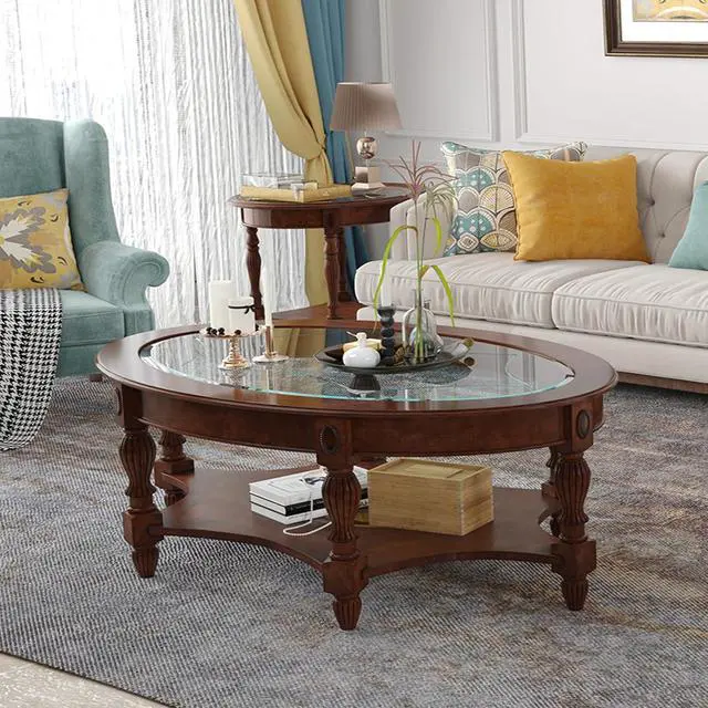 Stable & Sturdy: This oval cherry brown cocktail table, the legs are made of natural solid wood, which is strong and sturdy, and the top is made of handmade wood pannel with chic patten, which will not be easily scratched in daily use.