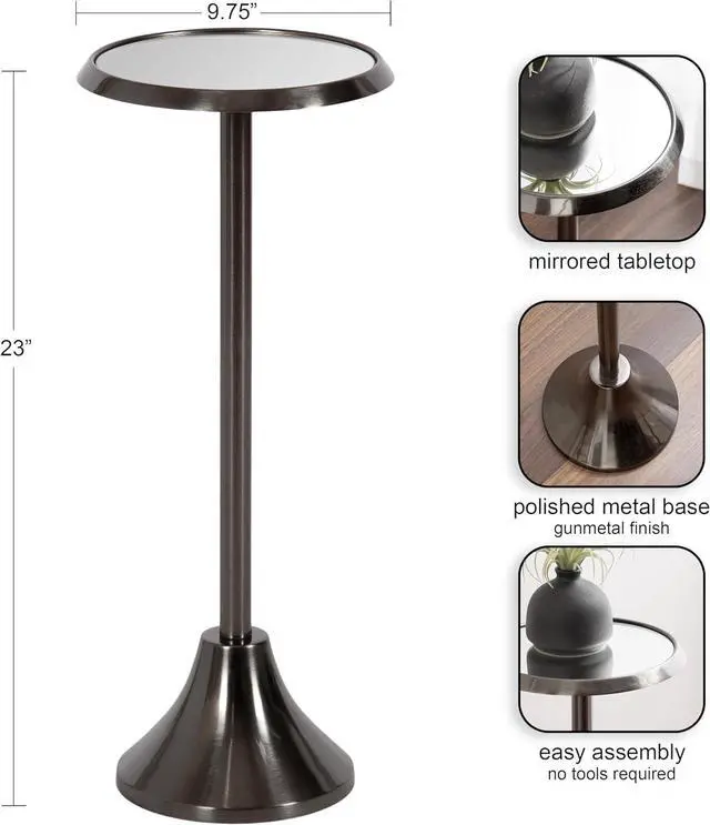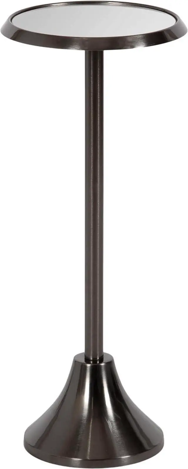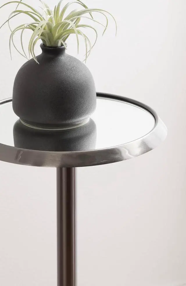 Unique Accent Table: The Sanzo drink table is handcrafted in India making each piece look distinct thanks to its hand-applied gunmetal finish and mirrored tabletop