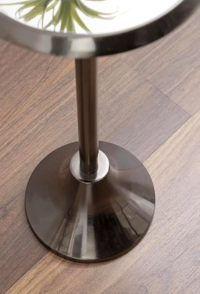 Quality Material: This round drink table is crafted from rich iron with a stunning mirrored glass tabletop, making it a resilient yet stunning accent feature