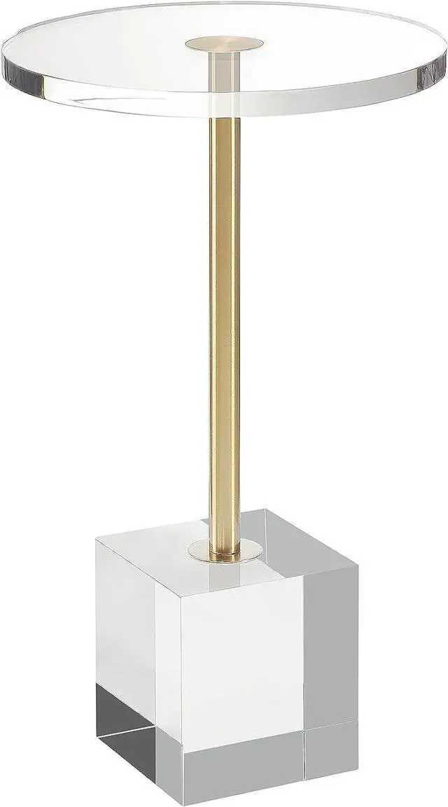 Made of acrylic and stainless steel. Perfect for living room. use as end table, tea table. Color: Clear and Brushed Gold Size23H x 13.5W x 13.5D Assembly required. Easy assembly.