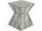 SQUARE SMALL TABLE: The mother of pearl accent table features an eye-catching hourglass shape with a vertical mosaic of shells on its exterior, making it a stunning statement piece