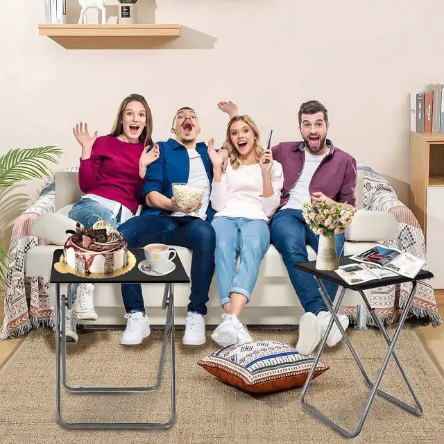 MULTIFUNCTIONAL TRAY TABLE: TV tray folding table does not define the use scenario, TV dinner tray, snack table tray, coffee table tray, bedside table for living room bedroom. It' s up to you