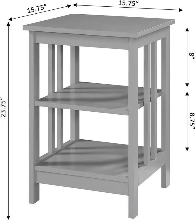 Available in Multiple Finishes Middle and Bottom Shelf for Additional Storage Quick and Easy Set Up Will Complement any Existing Furnishings (L) 15.75 in. x (W) 15.75 in. x (H) 23.75 in.