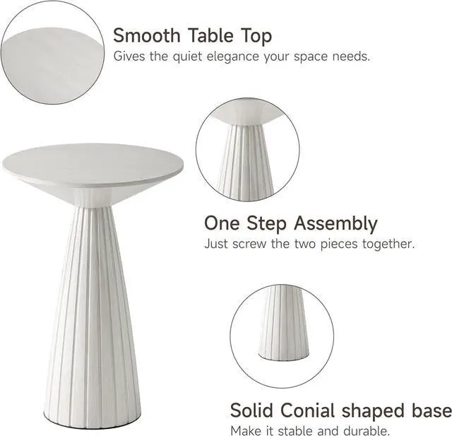 Stylish yet MinimalistThis pedestal end table is featured with a textured finish, which add visual appeal to your personal space. Round wood top set on pedestal tapered base makes the wood end table more prominent in the classic style. Perfect for any of your seasonal themed displays, it complements natural interior colors and classic themed spaces.