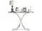 Timeless Entry: This silver glass entryway table boasts a contemporary allure, featuring clear glass that exudes a sense of refinement and transparency. Shiny silver metal frames add a touch of glamour, creating a visually stunning and dynamic silhouette. Complementing the overall design is a white faux marble base that adds a luxurious and chic element to the table