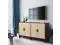 MULTIFUNCTIONAL CABINET - All-purpose storage cabinet can meet your various storage needs as a sideboard or buffet server cupboard in dining room or kitchen. 62.3 inches length is big enough for using it as a entryway console table or TV stand in living room. The balck color cabinet and natural color rattan doors combined retro and modern, it can be suitable for various styles of home decoration, adding a touch of unadorned elegance to your space.