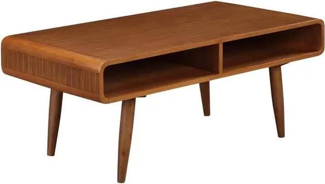 Solid rubberwood construction Zebrano wood veneers in rich walnut finish 2 open cubbies for storage Tapered legs for added strength and stablity Pairs nicely with our Alborg End Table or Varberg Side Table