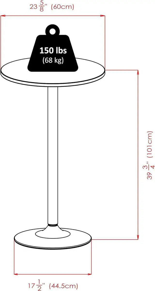 Overall size is 23.66 -Inch Width by 23.66 -Inch Depth by 39.76 -Inch Height