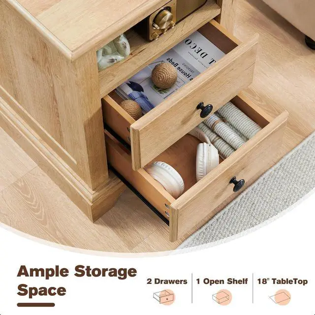 Spacious Storage - Keep your essentials organized and easily accessible with twosliding drawers and an open shelf. The smooth gliding wheels ensure that thedrawers open and close smoothly every time. The tabletop is also perfect for matching various styles of table lamps.