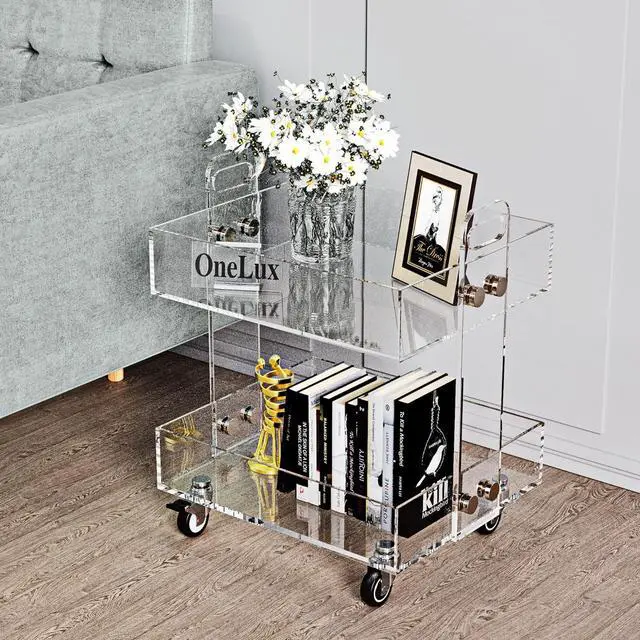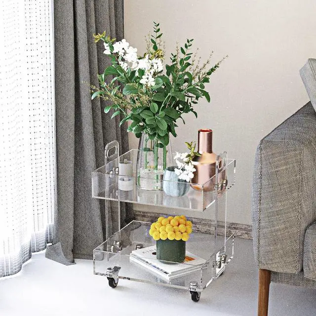 Small storage cart Small rolling tray cart KD Packed, easy assembling General Use: small bar cart, clear side tray table, bedside table or a night stand; ect