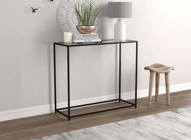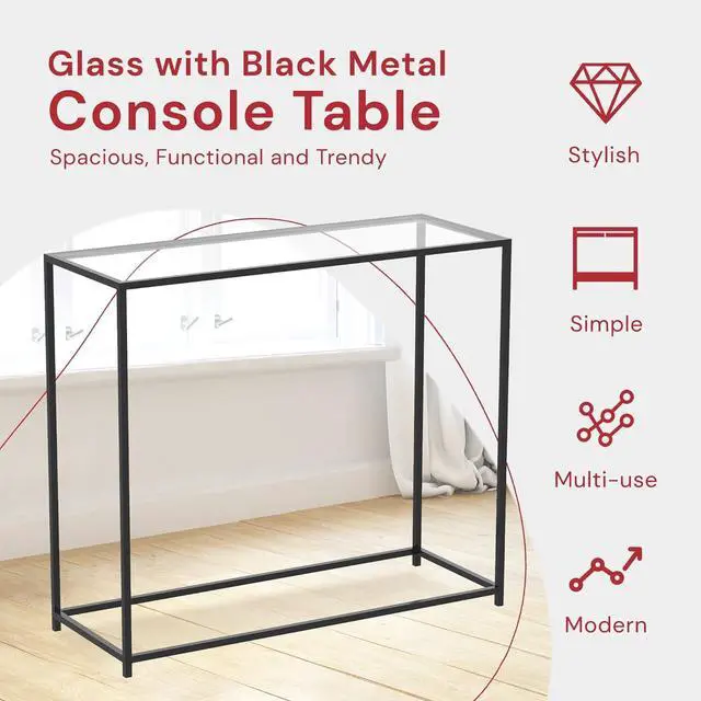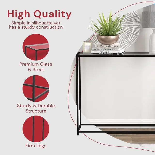 Chic Long Entryway Table - Keep your area clutter-free with our black thin entryway table. The sleek glass surface and ample space of this long side table elegantly displays your valuables for easy access.