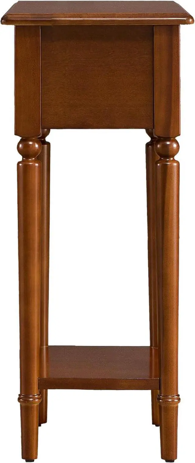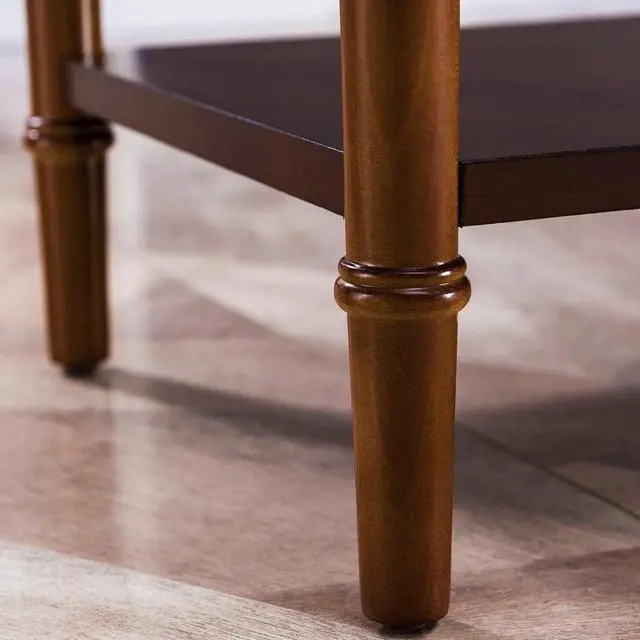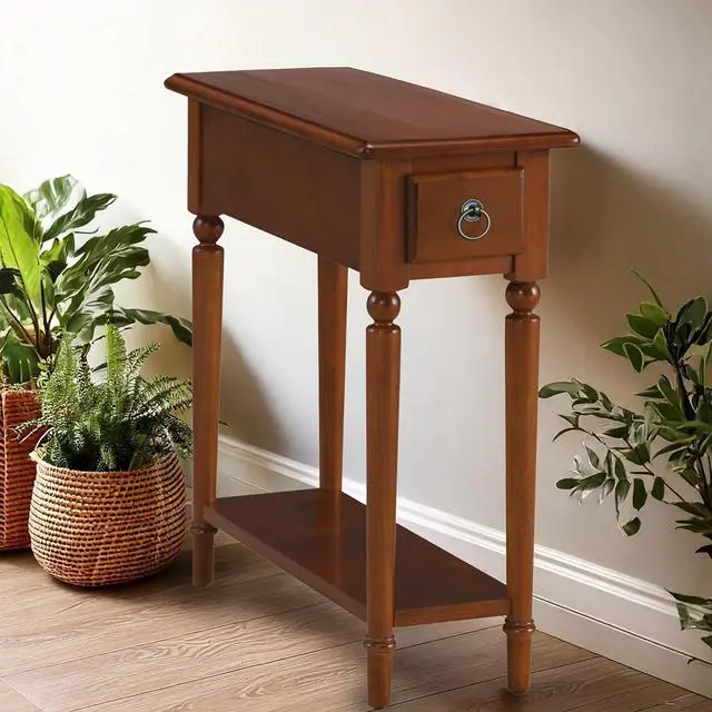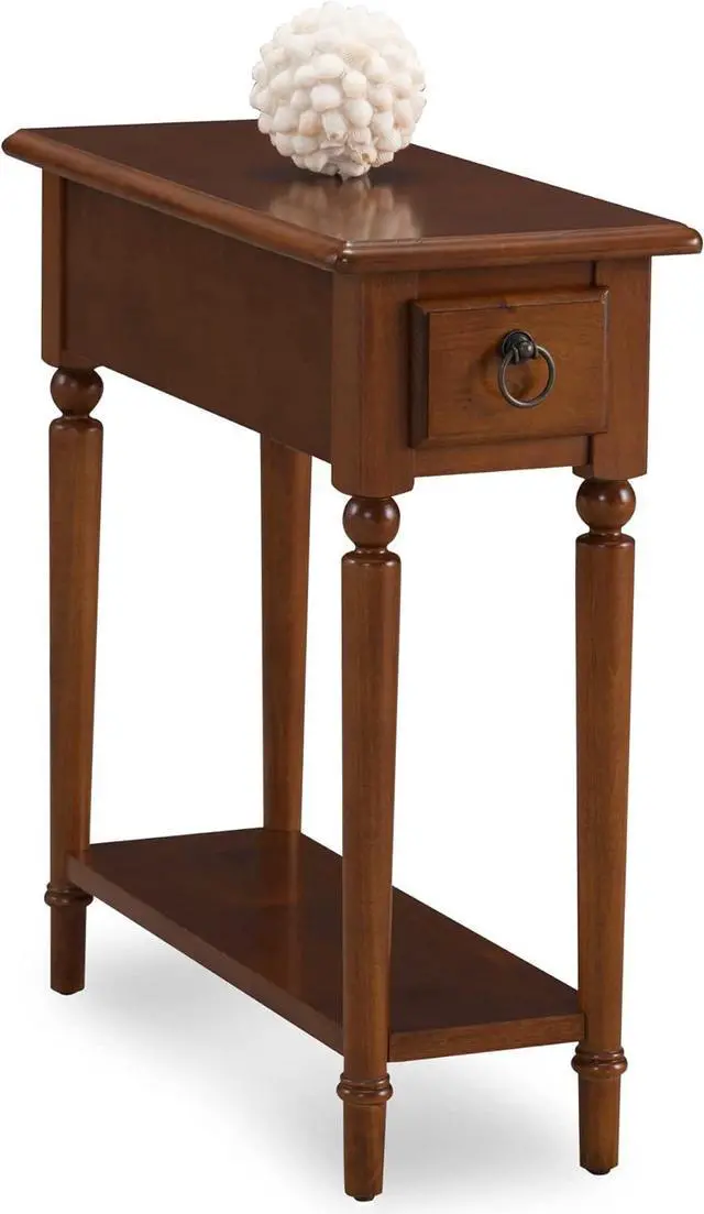 and Colorful: This end table features a classic silhouette in a rich pecan finish