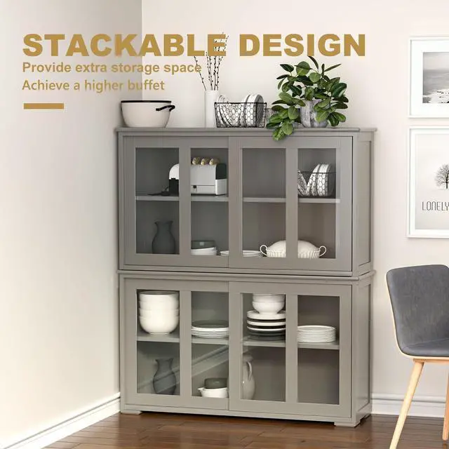 Larger Storage with Stackable DesignYou can buy 2 sideboard cabinets at the same time. By stacking them, you can get a higher sideboard cabinet with 4 shelves and a spacious tabletop to show off your treasured collectibles and records or to store sundries and kitchenwares. Its sleek apperearance is ideal for any home decor and furnitures.