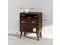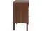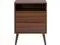 RETRO BEDROOM NIGHTSTAND: Features two drawers and an open shelf complete with four 8" long tapered solid wooden legs, brass finished knobs, and a cherry wood laminate finish to mimic a clean mid-century style