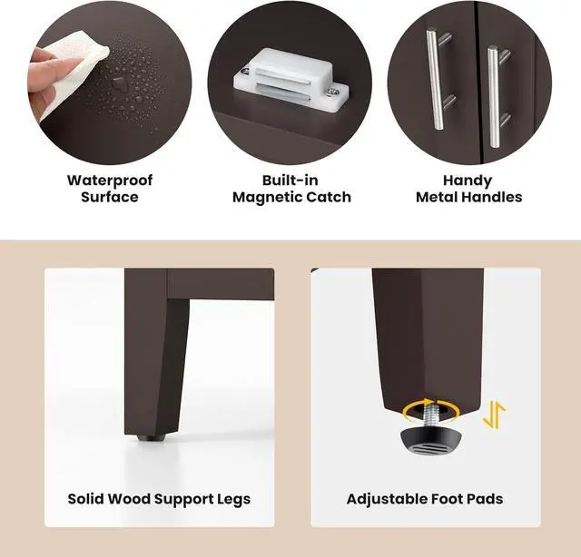 Adjustable Shelf: The middle shelf inside the storage cabinet could be freely adjusted in order to accommodate items with different heights. (Five positions to set) And you could also leave it aside if you dont want to use it. 2. Pine Wood Legs with