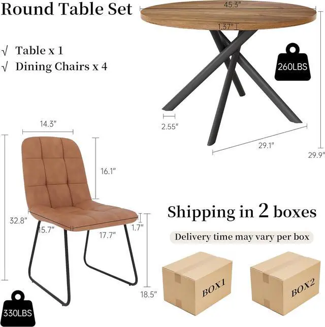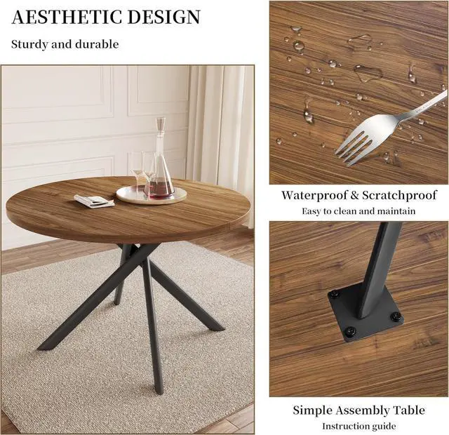 Durable Construction: The round table is crafted from thick MDF material with a sturdy X-shaped carbon steel base and non-slip rubber pads, ensuring stability and longevity. The chairs feature high-quality PU leather upholstery, ergonomic curved backs, and high elastic sponge for comfort and durability.