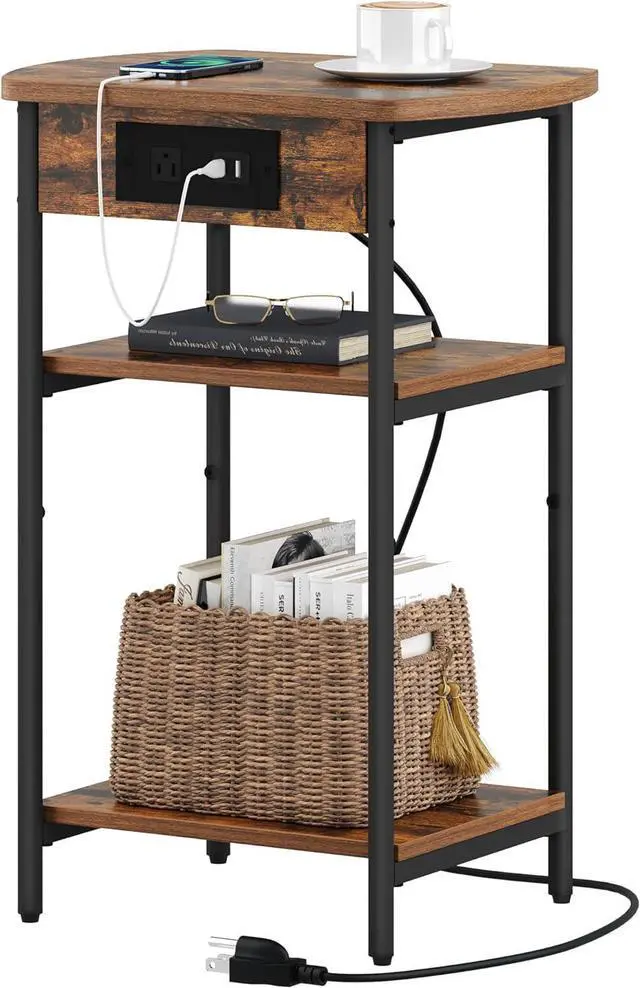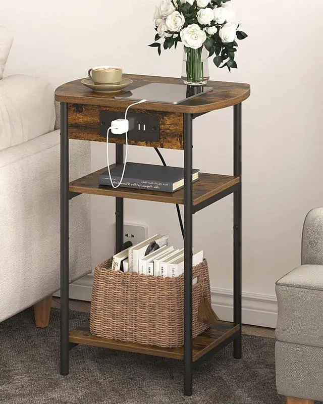 Organize Your SpaceKeep your essentials close at hand with our 3-tier narrow end table. Use the top surface for a lamp, the middle shelf for a remote, and the bottom shelf for books or magazines.