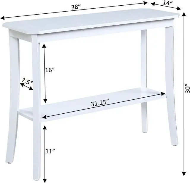 Part of the Designs2Go Baja Collection by Convenience Concepts Available in multiple finishes Bottom shelf for additional display Quick and easy set up Will complement any existing furnishings 38 (L) x 14 (W) x 30 (H) " x Weight 21 lbs