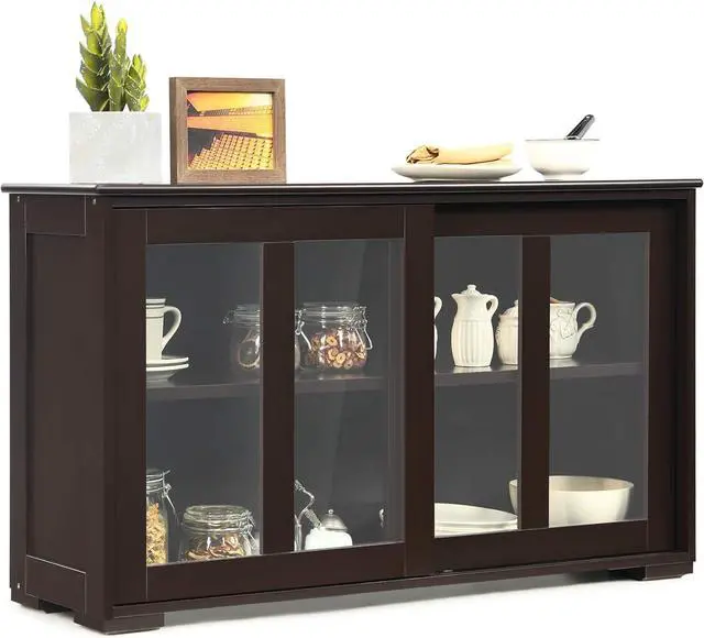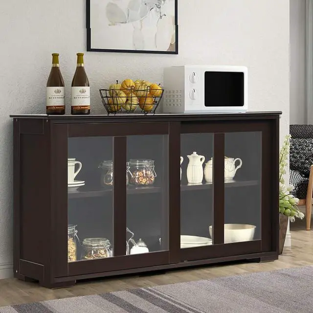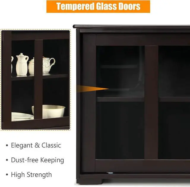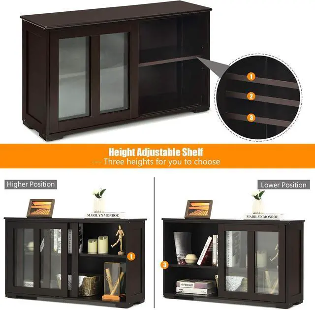 Height-Adjustable Shelf: This kitchen cabinet features a height-adjustable storage shelf with 3 height positions, which can manage to make the storage space utilized according to the item size. Plus, with tempered transparent glass doors, you can find your items effortlessly.