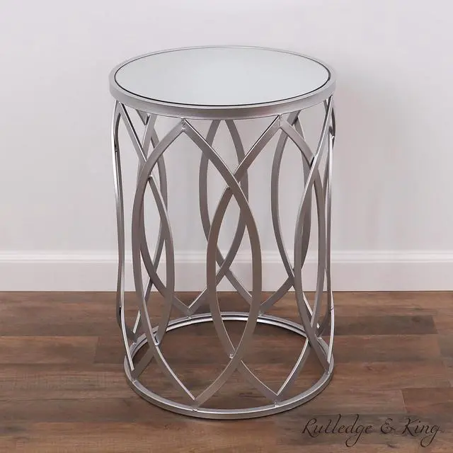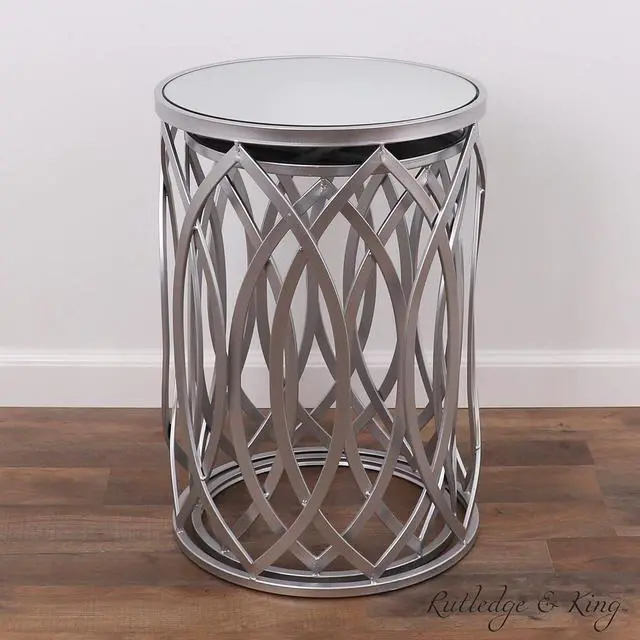 CONTEMPORARY DESIGN - The elegant design and sleek finish of the Rutledge & King Trinity Mirrored End Table Set blends seamlessly with any home decor. Each table comes in a contemporary silver or gold finish that has just the right amount of sheen to make your accent table stand out without being over the top. Rutledge & King accent tables offer the designer look and quality at an unmatched price.