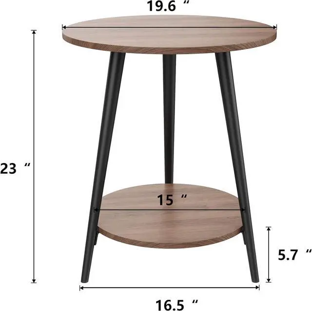 Enough Storage Home Tableblack end table features 2-tier of shelf for display. The round table top is 20 Dia x 23H, which provides spacious space for living room, The bottom shelf gives you extra space to store magazines and toys, and make your room tidy and neat.