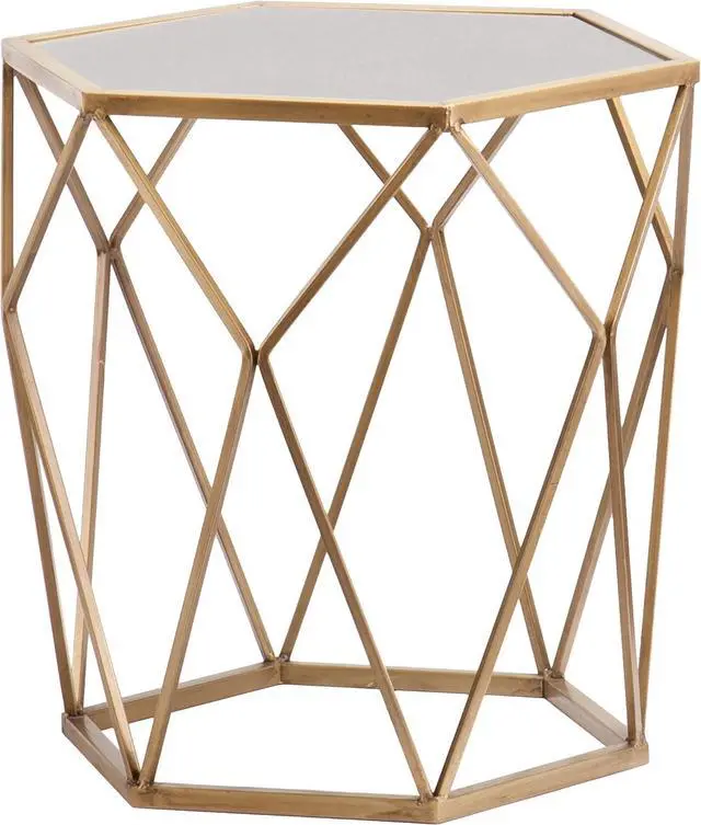 Soft gold finish with a open, polygonal form that attracts the eye from all angles