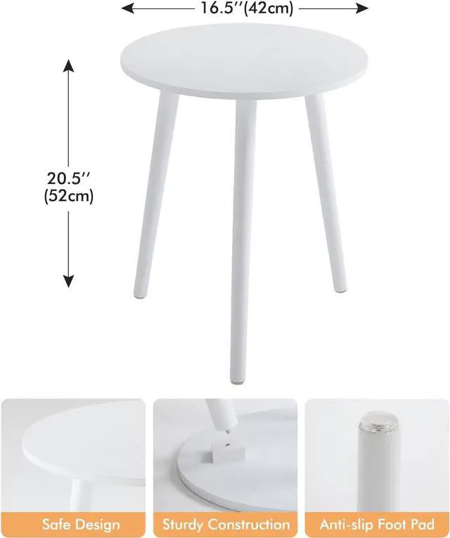 MATERIAl & SIZE-The Apicizon round side table is made of MDF and wood with smooth and eco-friendly coating, which is easy to clean and waterproof. The size of the small table is: 16.5 inch (42cm) in diameter, 20.5 inch (52cm) in height. It is light-weight and space-saving. The round edge can create a safe environment for your family.