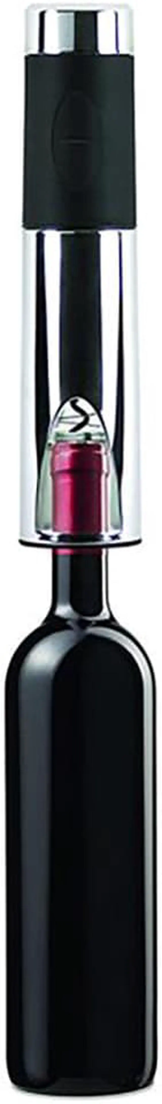 The Vinturi V9045 Battery Powered Wine Opener in Black/Silver Removes and discharge natural and synthetic corks in a matter of seconds with the simple press of a button. Fully charged batteries pack the power to open 70 bottles. Uses 4 'AA' batteries. To use the wine opener, simply place the opener over the top of the bottle, press the button, and voila! your bottle will be open and ready to enjoy.