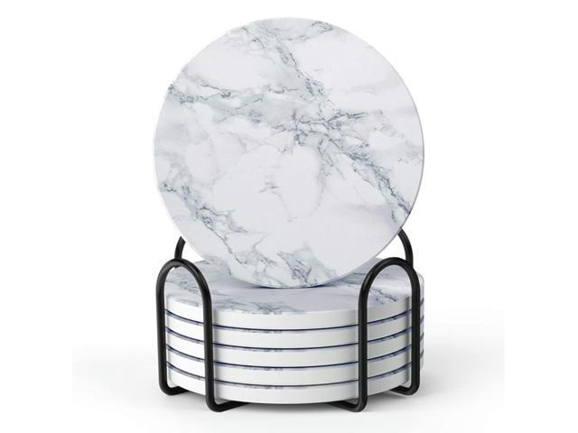 - Housewarming gifts - coaster diameter 4 inches, suitable for all mugs and cups. Simple white Marble-style coasters can be easily matched with any style of home, it is a good choice for friends to home decor gifts