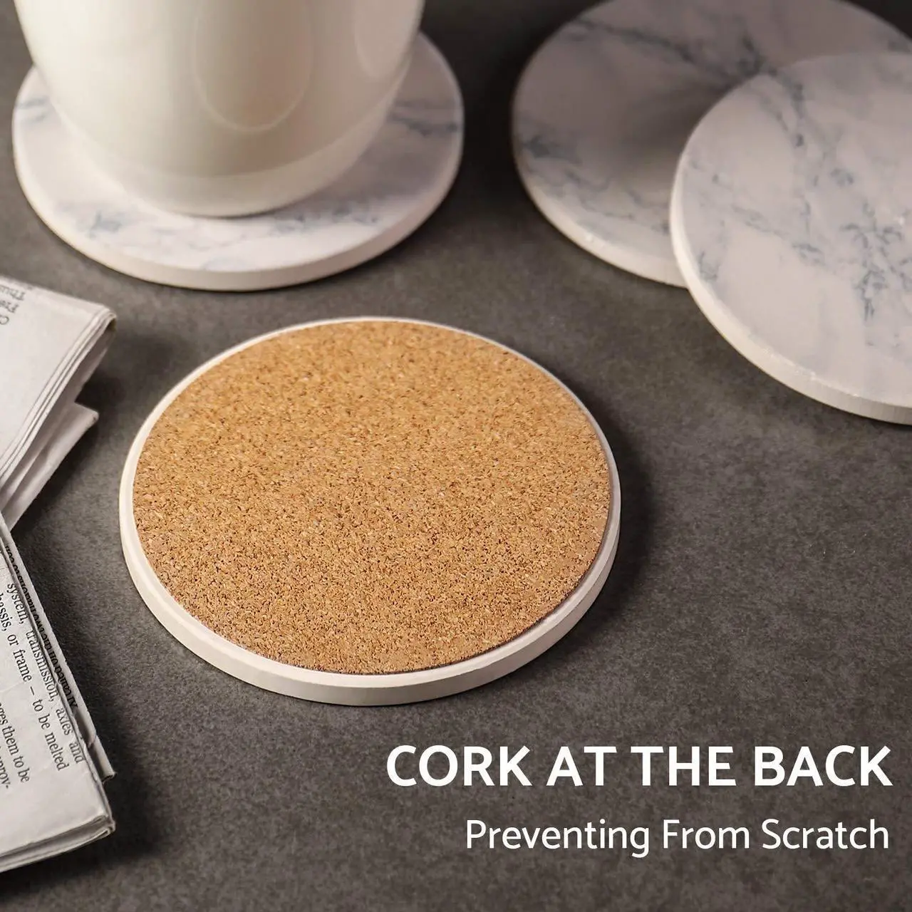 - Anti-skid cork bottom - cork mat at the bottom of each coaster that protects furniture or tabletops from scratched and worn